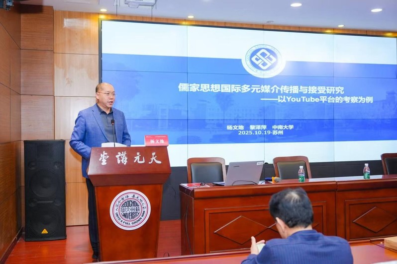 19日上午,中南大学杨文地教授基于YouTube平台考察,结合丰富生动的案例,分析儒家思想国际传播的多元媒介路径与接受特征,阐释如何讲好中国故事。
