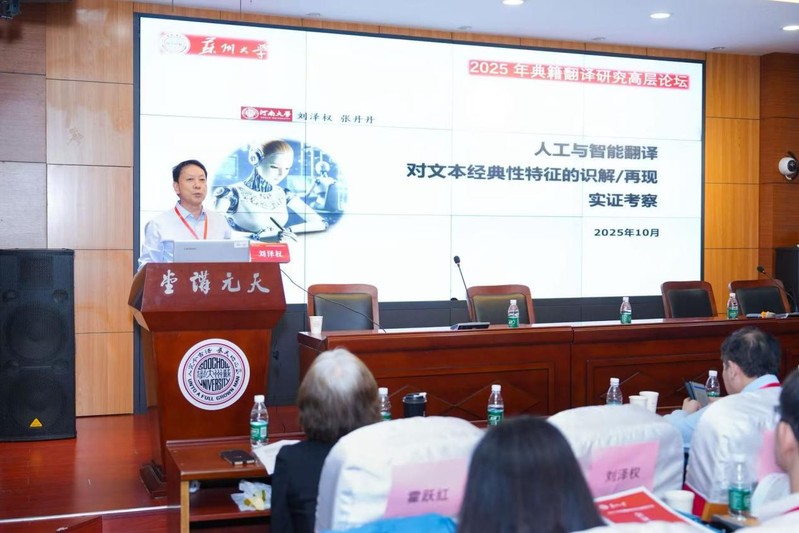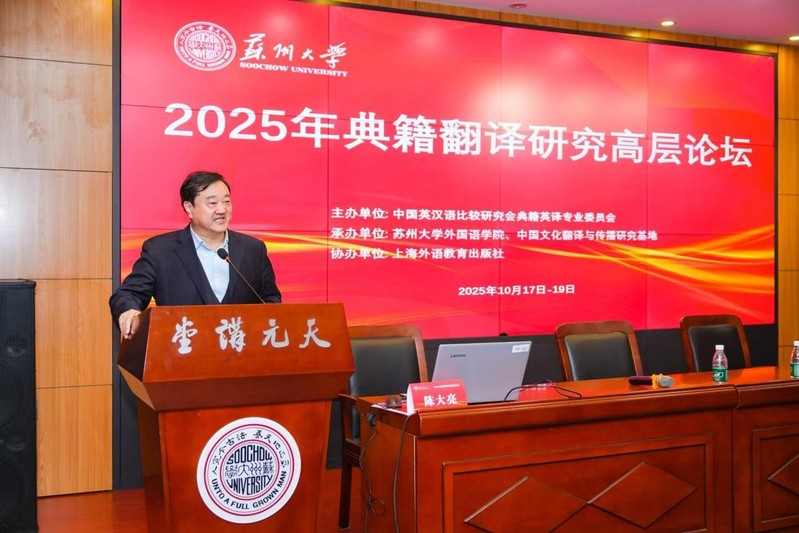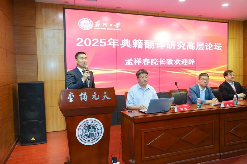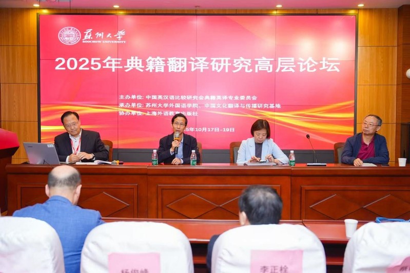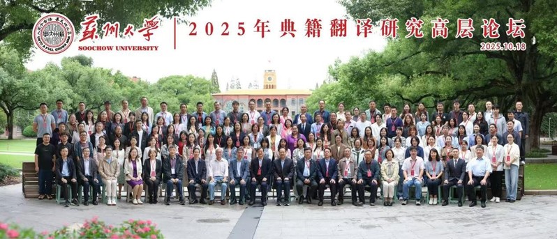 2025年10月17日至19日,由中国英汉语比较研究会典籍英译专业委员会主办,苏州大学外国语学院、中国文化翻译与传播研究基地承办,上海外语教育出版社协办的“2025年典籍翻译研究高层论坛”在苏州大学天赐庄校区成功举办。来自全国百余所高校及研究机构的150余位专家学者及硕博士生们齐聚一堂,围绕典籍翻译理论建构、实践创新与文化传播等核心议题展开深入研讨,为新时代中国文化“走出去”注入学术动能。