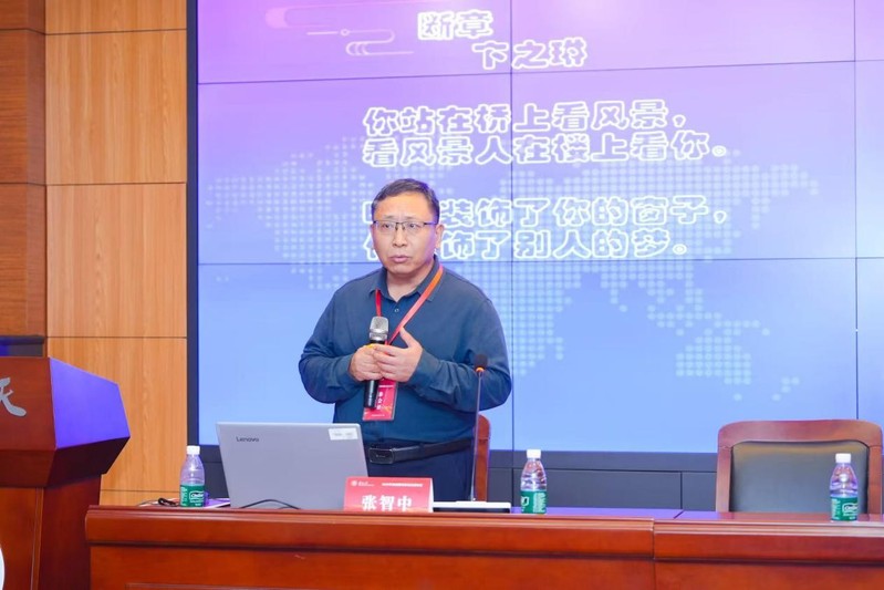 18日下午,主旨发言继续进行,三位专家学者围绕典籍翻译实践、理论创新及文学翻译思考展开深度分享,为参会者带来前沿学术洞见。南开大学张智中教授以《〈断章〉如何取“译”?》为题,强调译者需充分认知原诗 “三美”,并凭借扎实的译入语语言素养实现审美再现,而中国译者阅读英文、汲取语言资源的能力,是汉诗英译成功的关键因素之一。