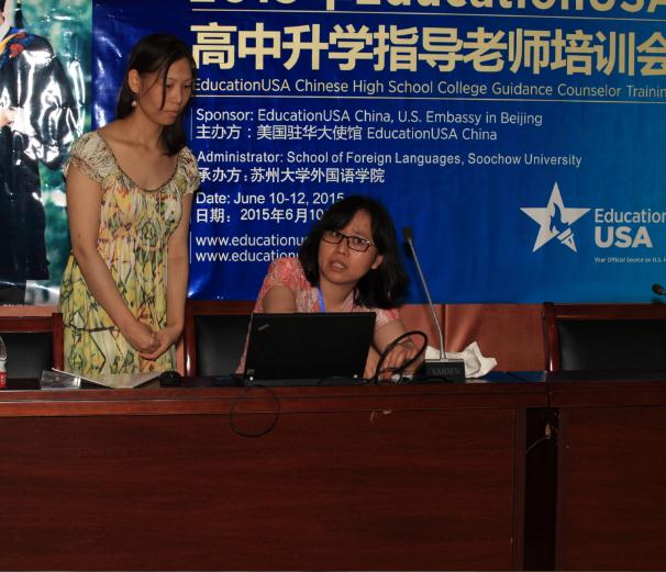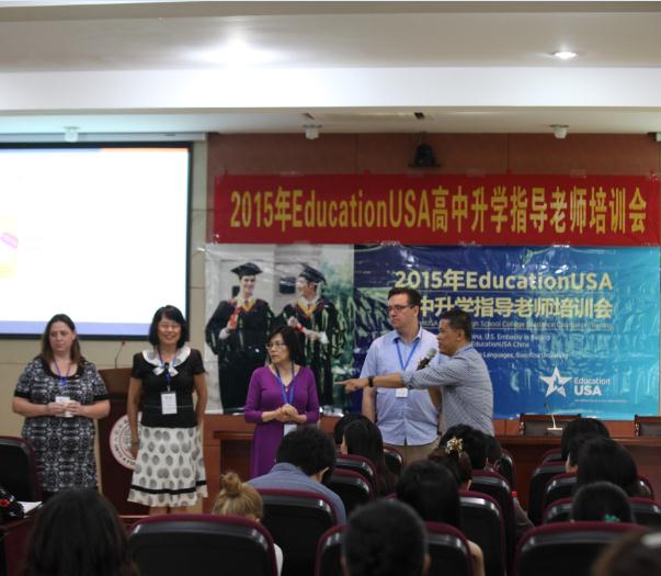 2015年6月10-12日,美国驻华使馆新闻文化处主办的2015 Education USA高中升学指导老师培训会在我院进行,包括美国驻华使领馆官员、美国高校国际项目部指导老师、托福ETS China考试中心负责人、雅思British Council考试中心负责人以及来自华东地区的50余名高中升学指导老师参加了本次会议。英文系沈鞠明博士应邀担任了本次会议的全部组织与协调。