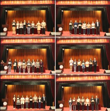 首先,由王欣书记宣读了2015年度校级获奖名单。他对我院2015年度本科生获奖情况给予了充分肯定,向获奖集体和个人表示祝贺,并鼓励同学继续努力,再创佳绩。