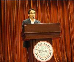 最后,外国语学院的优秀毕业生、现学校国际交流合作处副处长陆惠星为同学们作精彩报告。陆处长亲切地讲述了自己当年参加高考以及大学本科时的经历,告诉我们无论因何原因来到这个专业,都要努力对它心怀热情。在回忆自身经历的过程中,他将外语学习“多读、多说、多听、多写”八字经验分享给同学们,督促大家一定要抓紧零星时间,把学习融入日常,提升自己的语言运用能力。他不仅建议大家在当下的国际化潮流中努力抓住出国交流机会以增长见识、拓宽视野,也对当下热门的考研与就业问题提出了自己独到的见解。听完陆处长平易近人又涵蕴丰厚的发言,在场同学们感到获益匪浅。