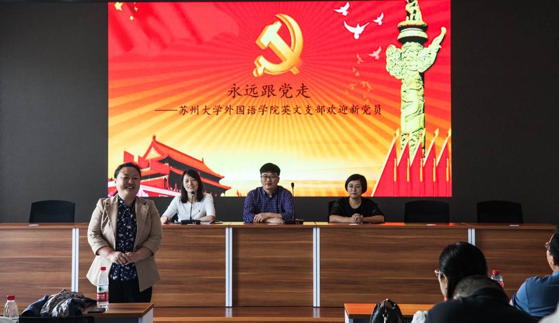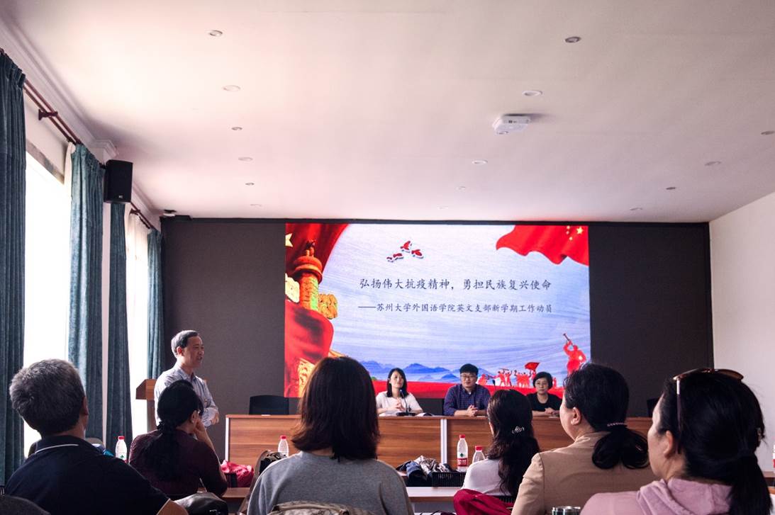 在蒋巷村的会议室里,英文支部书记杨志红老师、宣传委员莫俊华老师和组织委员胡焱老师还组织全体党员开展了一次生动的支部活动,活动分为以下六个主题:“永远跟党走”、“弘扬伟大抗疫精神、勇担民族复兴使命”、“停课不停教、停课不停学”、“坚持立德树人、推进课程思政”、“认真学习四史、坚定文化自信”以及“百廿苏大,有我更强”,这些主题涵盖了教学、科研等各条阵线,每个主题邀请党员代表发言、分享心得、展开讨论,支部还设计了党史、新中国史、改革开放史、社会主义发展史以及新冠肺炎疫情防控知识的在线知识竞答活动,使支部党员们进一步增强道路自信、理论自信、制度自信、文化自信,做到不忘历史、不忘初心,知史爱党、知史爱国。