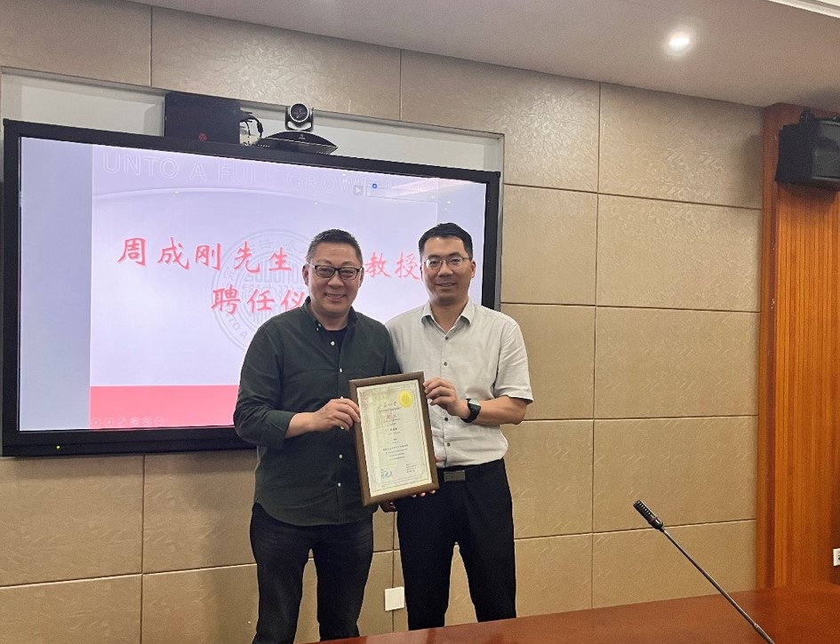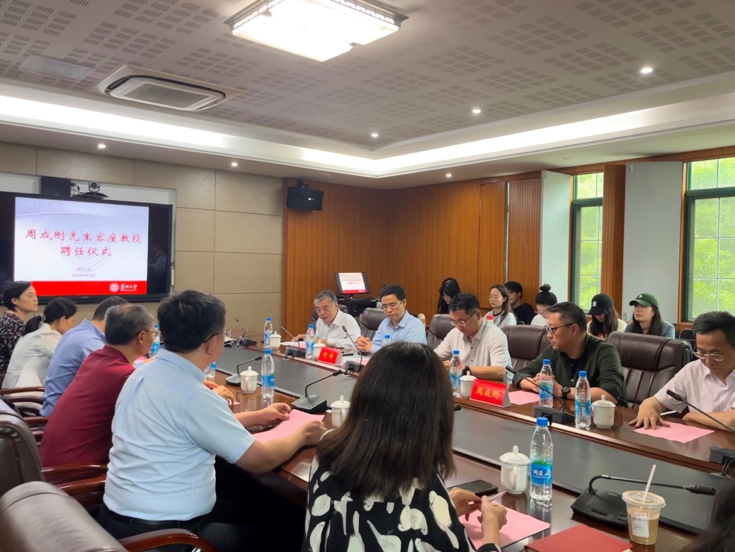 2023年6月19日下午,周成刚先生苏州大学客座教授聘任仪式在苏州大学外国语学院隆重举行。本次聘任仪式由苏州大学外国语学院院长朱新福教授主持,校党委常委、副校长李孝峰、人力资源处何峰处长、外国语学院党政领导班子成员及师生代表等出席了聘任仪式。