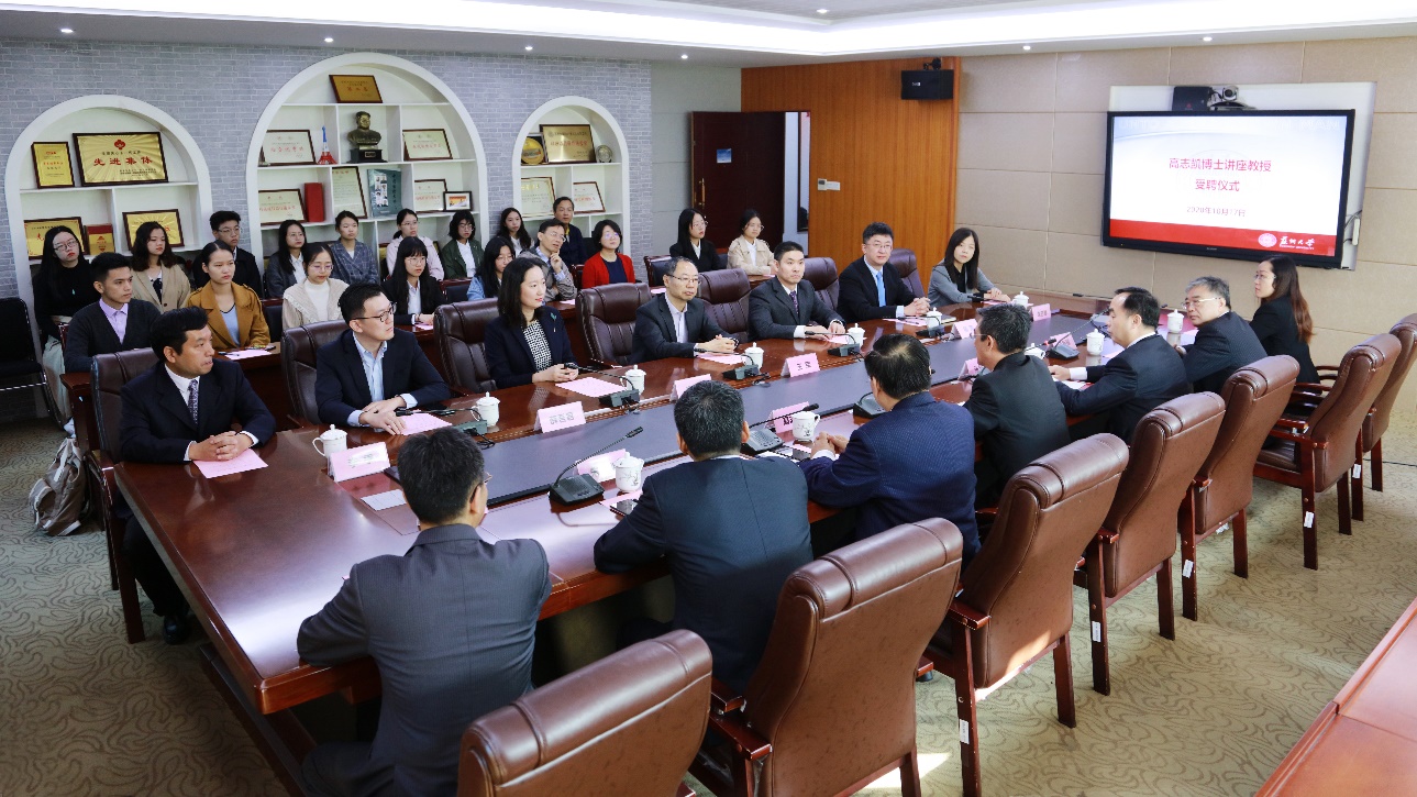 2020年10月17日上午8点,高志凯博士应邀担任讲座教授受聘仪式在天赐庄校区崇远楼210室隆重举行。苏州大学校长熊思东、副校长张晓宏、人事处处长朱巧明、副处长章宪、外国语学院领导、部分教师以及学生代表参加了授聘仪式。授聘仪式由副校长张晓宏主持。