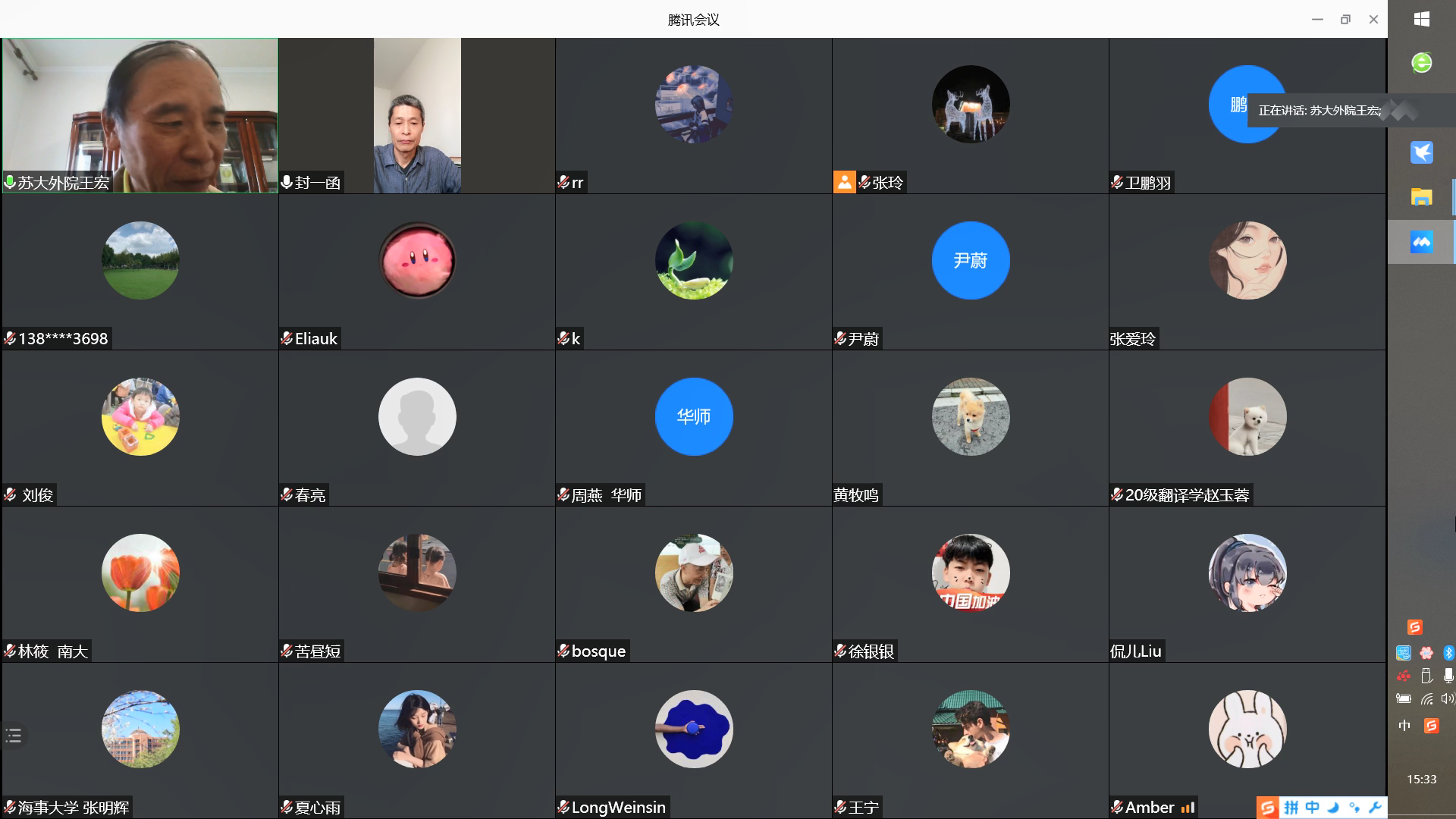 2020年10月12日下午,首都师范大学外国语学院封一函教授应邀在腾讯会议为苏州大学外国语学院的师生作了一场题为“关于英语专业本位观的再思考”的学术讲座。本次讲座由我院王宏教授主持。