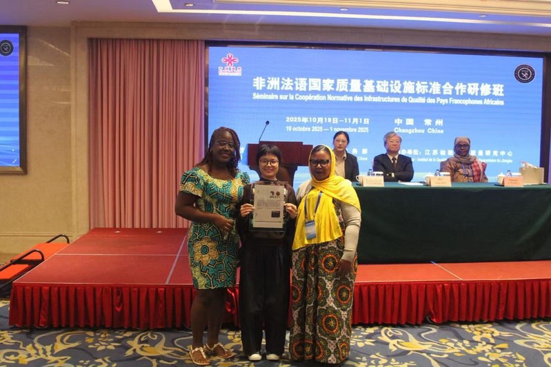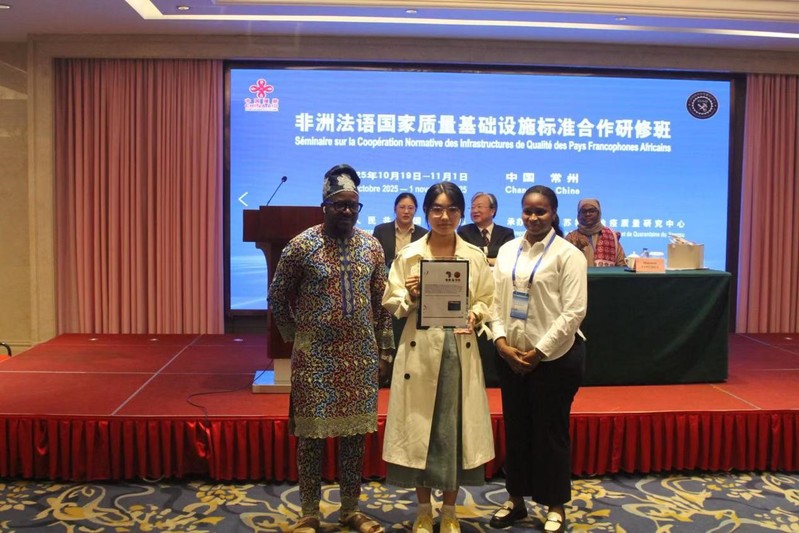 10 月 19 日至 11 月 1 日,2021 级法语专业本科生马慧星、黄艳桃,参与商务部主办的非洲五国质量基础设施标准合作研修班。她们随团赴杭州、湖州走访蓝豹、隆力奇、九阳等国内著名企业,并在无锡传统糕点体验与湖州潞村“世界丝绸之源”文化参访中担任讲解,深化了中非在质量标准与人文领域的交流与互信。