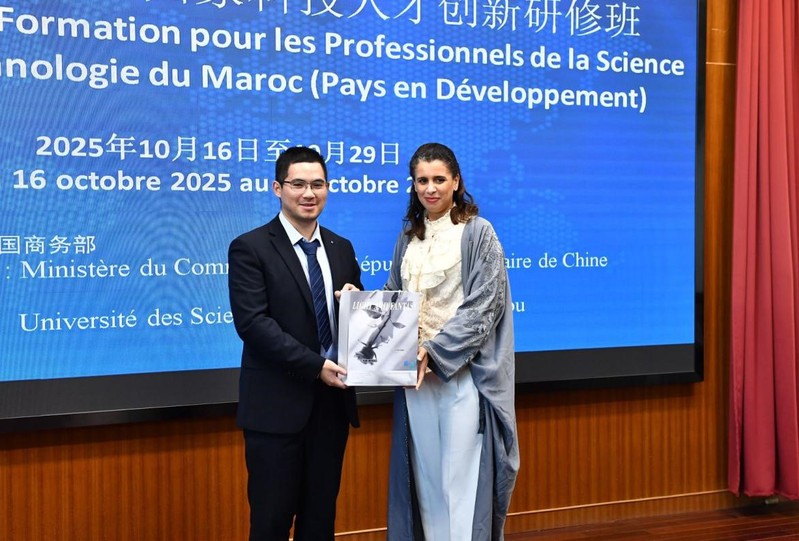 10 月 16 日至 29 日,2025 级法语语言文学硕士姚嘉威,为商务部援外 “摩洛哥科技人才研修班” 提供口笔译支持。他随团赴苏杭沪等地,完成科技园区、企业及场馆的多元领域翻译任务,以专业表现助力中摩科技交流,展现我院学子风采。
