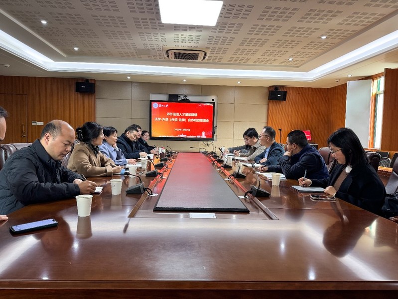 12月1日,外国语学院与我校王健法学院在崇远楼210会议室召开涉外法治人才基地建设——法学-外语(外语-法学)合作项目推进会。王健法学院院长程雪阳、副院长瞿郑龙、副院长庄旭龙、教学科研办公室副主任支劲松、本科教学秘书李雪,外国语学院党委书记陶培之、院长孟祥春、副院长陆洵、副院长石晓菲、副院长朱颖、党委副书记兼副院长舒洪灶及教务办公室主任庄宇峰出席会议。