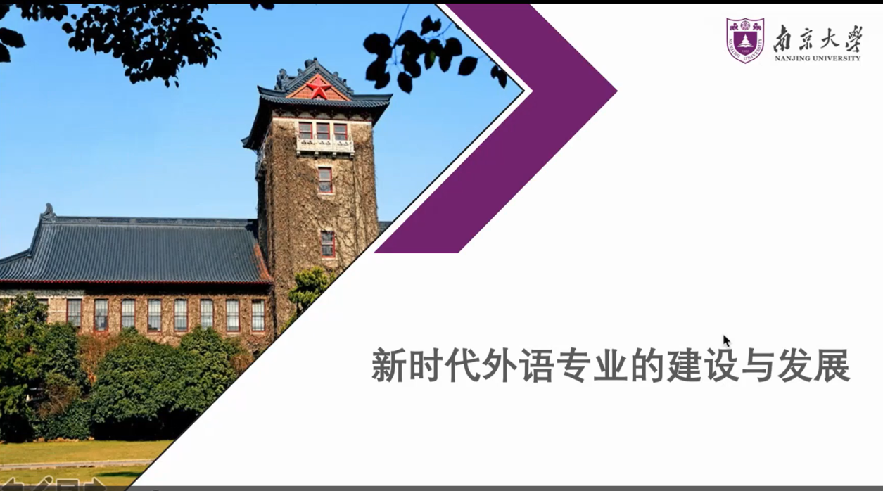 讲座中,何宁教授从“新时代、新文科、新外语”“新时代的外语专业”“新时代的外语学科”“新时代的外语教师”四大方面阐述了新时代外语专业建设与发展面临的机遇和挑战。对于新时代的新文科和新外语,何教授指出,在新时代,新文科建设的新使命之一是“如何培养知识广博、通晓中外的跨文化研究与传播人才,以促进多元文化交流交融。”同时,新外语要表现出自己的使命和担当,包括服务国家和民族的发展战略,讲好中国故事;服务“一带一路”倡议,关注和发展“一带一路”沿线国家的语言、文学和文化研究;服务国家全民外语能力的提升以及服务中国特色哲学社会科学话语体系建设。同时,外语专业应推动“大外语”建设,向其他学科拓展,实现跨界融合,在教学和研究内容、手段、模式等方面进行创新。对于外语专业的人才培养,他指出,“我们要彻底实现从单向度能力到双向度能力培养的转变,将理解世界、传播中国这一理念贯穿人才培养全过程。”对于新时代的外语专业,他认为应“打破以往‘重国外,轻国内’的定式,打造新的理解世界、传播中国的外语人才培养模式。”在外语专业建设中,坚持守正创新,在提高语言、文学、翻译三方面的教学质量的基础上,按时代发展的要求进行创新。在这一部分,何宁教授还以南京大学的实践课程创新为例,说明如何“通过将实习实践活动纳入课程教学,充分发挥学生的主动性和积极性,将语言运用能力的提升融入知识的获取过程,将多维能力的培养融入素质教育之中,打破传统课堂内外学习各有偏重、界限分明的固化模式。”对于新时代的外语学科,他引用了《新文科建设宣言》中的新文科建设目标,即“推动文科教育创新发展,构建以育人、育才为中心的哲学社会科学发展新格局,建立健全学生、学术、学科一体的综合发展体系。”他对这一目标进行了分解和分析,认为这意味着提高学生的研究能力、外语运用能力和跨文化能力;突出学科对人才培养的学术支撑;通过外语专业人才在学术上的成果有效推动外语学科的发展。对于新时代的外语教师,他强调提高外语教师素质和能力的重要性,认为外语教师应“以立德树人为使命,通过通识课程体系建设来提升学生的人文与科学素养”;同时要贯穿价值引领,应“突出本土意识,通过中国文化课程的建设,来培养学生的中国情怀与国际视野,增强学生的社会责任感,强调课程思政的建设,在专业课程的教学中,发挥润物细无声的共用,将思政教育融入到教学的全过程。”何宁教授的发言具有很强的前瞻性和引领性,与会的老师纷纷留言,表示“很受启发,既有压力,又备受鼓舞”。