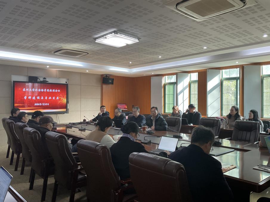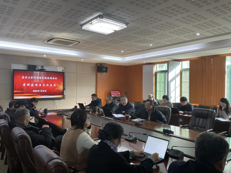 2024年1月12日下午,外国语学院第三十二次教授会议在崇远楼210会议室如期召开。学院党政领导班子成员、全体在职教授,各系、办公室、中心、党支部负责人参加了此次会议。本次会议的主议题为“学科建设与专业发展”。