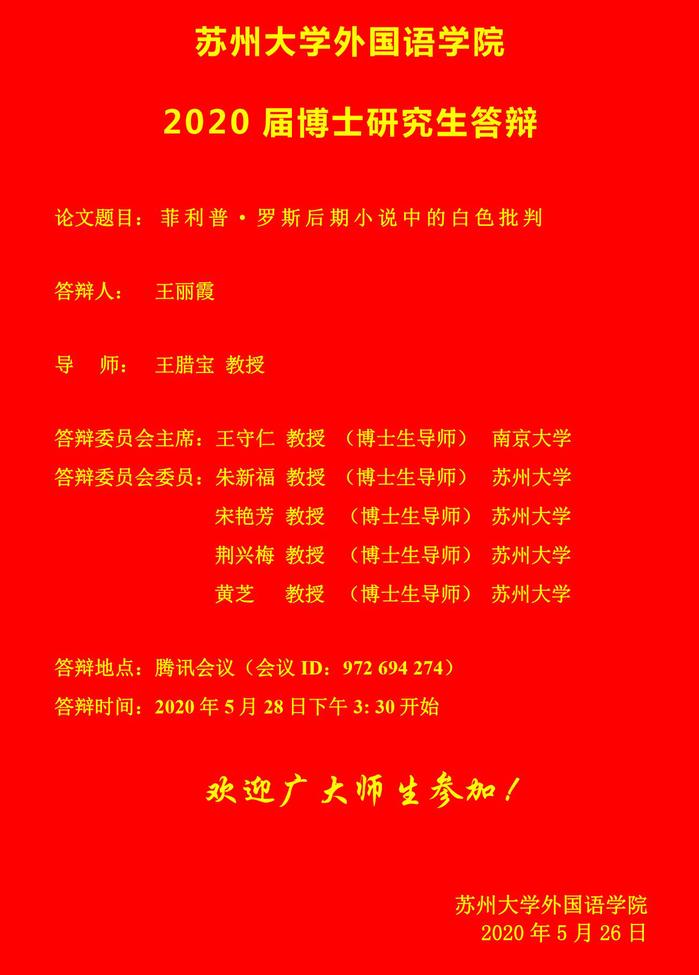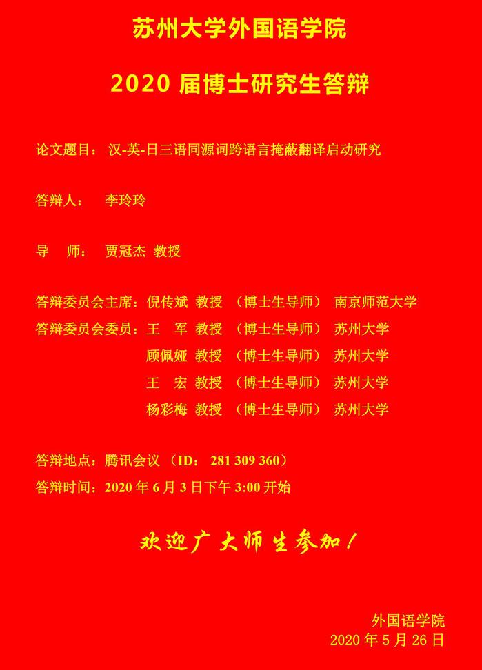 苏州大学外国语学院2020届博士研究生毕业论文答辩海报