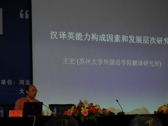 本次会议期间,汪榕培、王宏印(南开大学教授、博导)、傅惠生(华东师范大学教授、博导)、李正栓(河北师范大学外国语学院院长、教授、河北省高校外语教学研究会会长)、杨俊峰(大连外国语学院教授、辽宁省高校外语教学研究会会长)、王之江(浙大城市学院外国语学院院长、杭州市翻译协会会长)、李秀英(大连理工大学外国语学院副院长、教授)、朱源(大连外国语学院应用英语学院院长、教授)和我院王宏教授等应邀做了大会发言。汪榕培教授的发言题目为“我与翻译”,他的发言涉及了翻译领域的“中国学派”、对“典籍”的理解等问题和对典籍英译领域的未来展望,他特别强调了要重视中国典籍英译的中国特色和典籍英译实践与研究的国际性、普适性、现代化和对外宣传。其他大会主题发言者的题目分别为 “新格律翻译的践行者,中国典籍英译的教育者:热烈祝贺汪榕培教授七十华诞”、“‘传神达意’赏《牡丹》”、“传神达意、阅读与欣赏”、“从语言、文化、技术层面看翻译”、“‘匠心独具’,惠泽后人:汪榕培教授的10年引领”、“基于汉英平行语料库的历史典籍术语提取与鉴定”、“从生态翻译学角度解读汪榕培英译《木兰诗》”和“汉译英能力构成因素和发展层次研究”。