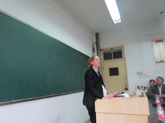 Linda Neil博士本次讲座的主题是澳大利亚文学创作,在一个半小时的讲座中,她先介绍了自己的背景、成长经历以及澳大利亚的文化环境,指出澳大利亚社会中的民主精神和互助主义对于她的影响。她指出,近年来,随着一大批女性(尤其土著)作家的兴起,澳大利亚文坛出现了一大批以家庭生活为主题的文学作品,她列举了多位作家的作品,特别以多位土著作家诗歌为例,介绍这种作品的特点。她认为,这些作品对于她的创作产生了许多积极的影响。Neil博士最后向大家介绍了她的Learning How to Breathe的写作背景和意图,并朗读了部分片段,她认为,文学不仅囿于宏大命题,亦可见微知著,贴近生活,此外,文学、艺术与音乐之间存在相通之处。在讲座的最后, Neil 博士在大家的要求下欣然演绎了一首她自己创作的歌,专业的水准和优美的歌声赢得了大家热烈的掌声。