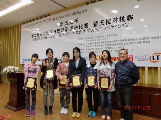 这次比赛由江苏卓越国际交流基金会、中国人民大学国际学院主办,苏州良图语言文化培训中心承办。苏州地区的日汉双语演讲比赛自去年开始举办,今年是第二届。比赛形式分为中国人日语对话演讲赛(二人合作)、日本人讲汉语演讲赛(个人)、中国人讲日语演讲赛(个人)和日语情景剧对抗赛(团体)。