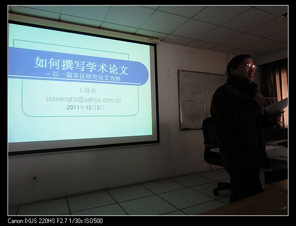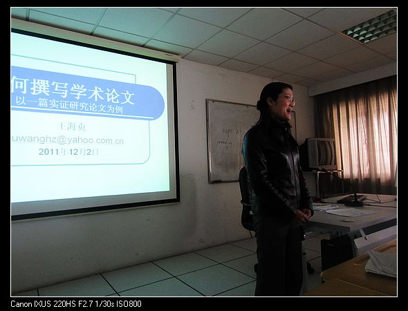 12月2日下午,我院举办的“外语学院青年教师论坛”第二次活动在理工楼614教师举行,我院一百多位各个专业的青年教师和研究生参加了本次活动。首先,由高永晨教授做了精彩的报告,她的报告分两部分,第一部分包括“理论发展”(本体论、认识论和方法论)、“我的体会”(问题意识、反思意识、超前意识和创新意识)和“三种创新”(无中生有、移花接木和点石成金)等。接着,高永晨教授结合自己的两篇论文“符号消费的多样性功能――非言语交际视角”和“学分制下大学英语教学改革探索”进行了详细地讲解。本次活动的第二个演讲专家是王海贞博士,王博士首先介绍了实证研究的一些一般常识,接着根据自己的论文为大家做了题为“如何撰写学术论文――以一篇实证研究论文为例”的精彩报告。两位专家的报告从理论到实践、由浅入深、由易到难,讲得十分精彩,博得全场的阵阵掌声。