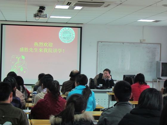 2012年3月14日下午,苏州大学外国语学院杰出校友、联合国终生译员、联合国译员培训官盛胜先生返回母校,为我院师生作了一场题为“联合国文件翻译”的学术报告。王宏教授主持了本次讲座。