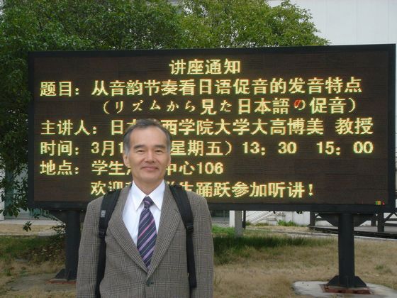 大高博美教授是日本关西学院大学研究生院语言交际文化科教授兼经济系英语教授,研究方向为音声学、音韵学。大高教授曾长期留学澳美,学识渊博,此次来访期间为日语专业研究生作了语言学方面的多场讲座,并应邀给大一学生作了发音指导。大高博美教授还针对日语语音学习的问题,在本部和文正学院分别作了题为“从音韵节奏看日语促音的发音特点”的演讲。