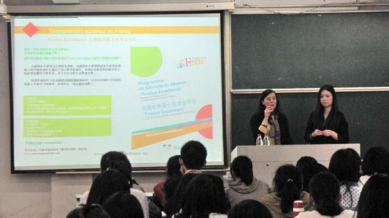 在近三个小时的讲座中,Isabelle Terpreau女士主要介绍了法国高等教育署、赴法留学签证申请程序、法国优秀硕士奖学金项目等内容。之后,来自外语学院、医学院、社会学院、商学院等多位学生向Isabelle女士提出了赴法国学习相关专业的问题。