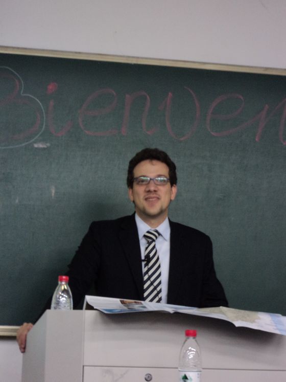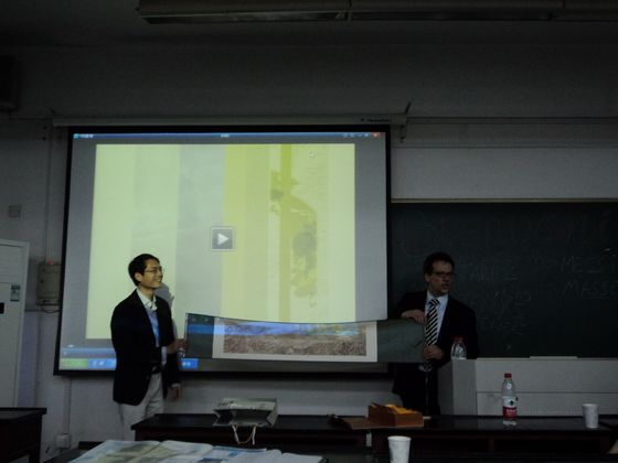 马赛尼奥先生首先称赞了美丽的苏大校园和我院热情的、活力十足的西班牙语师生。随后,他以轻松愉快的方式介绍了阿根廷的国家、社会、文化等情况,他特别向大家介绍了阿根廷壮丽雄奇的自然风光,描绘了宏伟无双的伊瓜苏瀑布、冰天雪地的冰川公园、瑰丽神奇的月亮之谷;谈到了阿根廷的文学成就,介绍了伟大的博尔赫斯,以及他的作品中蕴蓄的哲理与智慧;谈到了阿根廷的农业特产,还自豪地介绍了阿根廷质量上乘的牛肉。马赛尼奥先生比较了中国和阿根廷两国人民的生活,向大家介绍了阿根廷人重视优雅闲适、注重享受的生活节奏与民族性格。