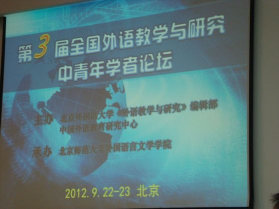 9月21-23日,由北京外国语大学《外语教学与研究》编辑部、中国外语教育研究中心主办,北京师范大学外国语言文学学院承办的“第三届全国外语教学与研究中青年学者论坛”在北京师范大学举行。参加本次论坛的共有来自全国各地70多位中青年学者。中国外语教育研究中心文秋芳教授和王克非教授、中山大学黄国文教授、上海外国语大学束定芳教授、广东外语外贸大学冉永平教授等上作了大会发言。专家教授们的发言深入浅出,极大的鼓励了青年学者的科研热情。论坛围绕语言研究、应用语言学研究、翻译研究、跨学科研究等主题在分会场进行了讨论,十多位专家、教授参加讨论并予以点评。我院贾冠杰教授主持了分会场活动并做了发言。我院曹艳红老师在分会场做了发言。