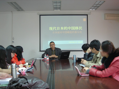 3月24~30日,日本关西学院大学祖运辉教授来我院讲学。祖运辉教授出生和成长于香港,青年时期留学日本和美国,获美国普林斯顿大学博士学位,目前任日本关西学院大学国际学部教授,主要从事日本历史和日本社会的研究。此次来访,祖教授首先给我院日语研究生和教师带来了题为“现代日本的中国移民――日本面对中国崛起的喜与忧――” 的讲座。他从日本传统的中华街,讲到大阪的“中国人市场”,从日本的中国人口讲到新泻领事馆的土地争议等问题,报告中,他结合丰富的图片介绍了在日中国移民的历史与现状,引导大家思考移民问题的可喜之处与可忧虑之处。讲座引起师生的极大兴趣,大家与祖教授进行了热烈的讨论,增长了这方面的知识。次日,祖教授为日语系本科学生讲了“现代日本的公害与环保”,通过现场回答学生们的提问和互动,使大家对现代日本的公害与环保问题有了新的全面深入的了解。
