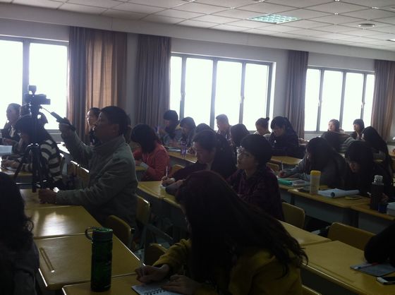在讲座中,严辰松教授结合生活实例,向大家介绍了基于使用的模型、语言建构的条件以及语言的建构。他宽阔的视野、缜密的思维、新颖的语言观,引发在场各位师生的思考。讲座进行了一个半小时。之后,严辰松教授还接受了部分老师、同学的提问,并一一为他们作了解答。讲座受到了大家热烈的欢迎。讲座在师生们意犹未尽的讨论声和热烈的掌声中结束。