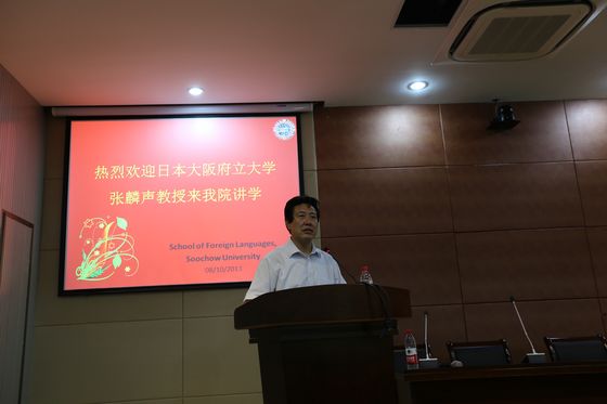 10月8日―10日,日本大阪府立大学张麟声教授应邀前来我院讲学。张麟声教授1978年复旦大学日语专业本科毕业,1987年在北京外国语大学硕士毕业,1997年获日本大阪大学博士,现为日本大阪府立大学教授,博士生导师。长期从事语言学、汉日对比语言学研究,在日本语学研究、双向二语习得研究等领域颇有建树,成果丰硕。至今已出版专著5部、译著3部,发表论文70余篇及书评多篇,并在日本主持多项文部科学省以及国家级科研项目。作为旅日中国人知名教授,在中日学术界均享有声望。