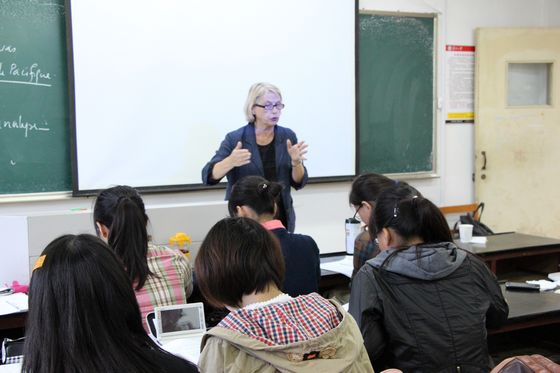 Renouard教授的讲座共分为两个部分:第一部分中,从论文的组成选题、构思、材料准备、正式写作等方面,Renouard教授详细地进行了讲解。其中,她着重讲述了选题的重要性,并邀请参与活动的学生分享了自己初步的论文选题,逐个进行点评,给出建议。通过这个部分的参与,同学们对选题的要求有了更进一步的了解。教授的建议也为以后的写作提供了很好的指导作用。第二部分中,Renouard教授建议学生作为讲座主体,模拟初步的论文构思,与此同时,教授进行适当的引导,在课堂中完成一个简单的构思,在此,她突出了“创新”这一点,鼓励同学在论文中从“旧题目”中尝试引发出“新内容”。