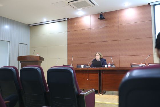 在此次讲座中,Voeikova教授首先介绍了自己的研究方向和研究兴趣,然后就俄语中指小表爱的后缀问题展开讨论。她列举现代俄语和立陶宛语中的大量实例来论证指小表爱形式的构词方式,指出并不是所有的词都可以构成指小表爱形式,接下来又讨论指小表爱词语的语义、语用以及和结构功能问题,分别详细论述了这三个功能和一些指小表爱词语的语义色彩和感情评价色彩,认为指小表爱词的使用可以缩短人们的距离感。最后,她也谈到了指小表爱的研究与俄语教学的结合问题,对以后的俄语教学也有重要意义。