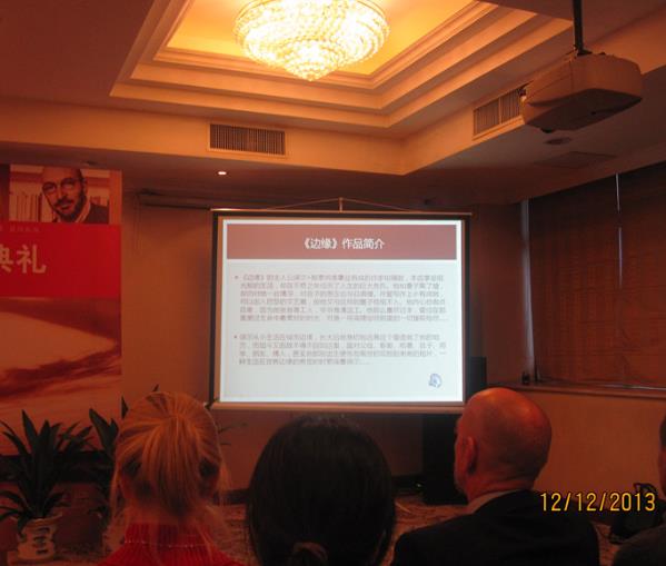 12月12日,北京举行的“21世纪年度最佳外国小说”颁奖典礼上,我院法语系陆洵老师翻译的法国长篇小说《边缘》与其它四部外国作品获“21世纪年度最佳外国小说(2013)”。中国社科院外文所所长陈众议教授主持了此次颁奖典礼。