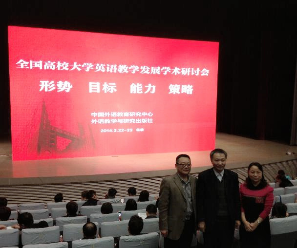2014年3月22日至23日,外国语院大学外语部主任王瑞东和副主任黄婷参加了北京外国语大学外研社举办的“全国高校大学英语教学发展学术研讨会”。本次研讨会被称为是一次规模空前的“千人盛会”:来自全国851所高校、共1051名院长或系主任集聚首都北京,共同探讨大学英语教学改革和发展。