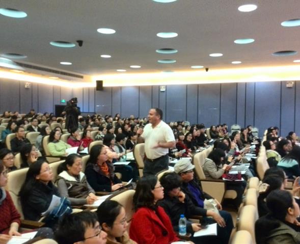 在讲座中,Bruce Applebaum老师为广大中学教师讲解了思辨能力的概念、发展渊源和对于当代学生的重要性,并且通过现场演示等方法阐述了如何在语言教学过程中加强对学生思辨能力的培养和训练。同时,Bruce Applebaum先生与到场教师进行了大量的现场互动,整个讲座学术内容丰富、严谨,又不失轻松愉快。