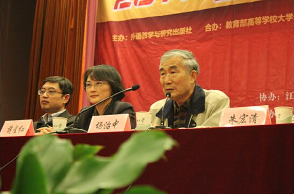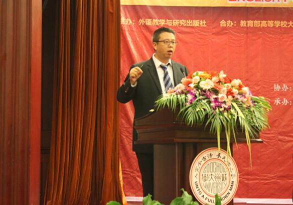 全国大学英语教学研究会会长杨治中教授也应邀致辞,他在讲话中表示“外研社杯”演讲比赛是一个难得的学习机会,是各高校学子相互切磋加强联系的平台。他希望选手们看淡成绩,积极参与,投入热情,借此提高自己的英语水平。