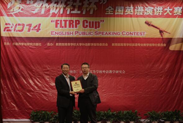 为办好本次大赛,外国语学院百余名师生组成了一支强大的工作队伍,大赛期间,他们全身心地投入工作,高水平的组织工作受到了来自广大师生的高度赞誉。为表彰苏州大学在组织承办大赛中做出的突出贡献,本次大赛的主办方外研社(外语教学与研究出版社)华东信息中心王建平主任特别授予我校外国语学院“江苏赛区优秀组织奖”,王腊宝院长代表外国语学院接受了奖牌。