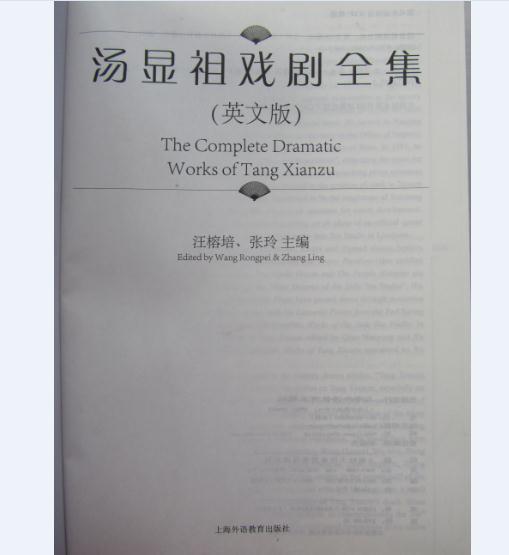 近日,由汪榕培教授、张玲副教授主持翻译的《汤显祖戏剧全集》(英文版)由上海外语教育出版社正式出版发行,全书共1060页,近180万字,收录了由汪榕培、张玲等译者英译的所有汤显祖戏剧(包括《紫箫记》、《紫钗记》、《牡丹亭》、《南柯记》、《邯郸记》),是目前唯一一部完整的英文版汤显祖戏剧集。其中《牡丹亭》、《邯郸记》和《紫钗记》先前已被收入国家重大出版工程《大中华文库》出版发行。