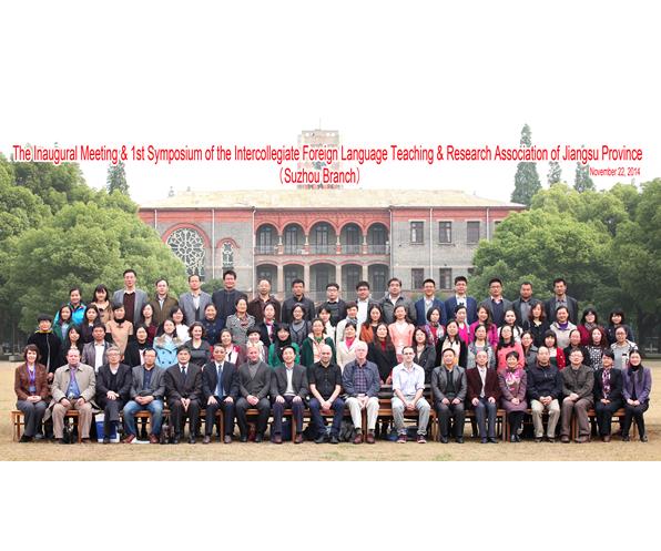 11月22日,江苏省高等学校外国语教学研究会苏州分会成立大会暨首届学术研讨会在我校外国语学院崇远楼举行。上午,来自苏州全市24所高校外语教学单位的负责人在崇远楼世界文化教室召开了首届理事会,江苏省高校外语教学研究会会长李霄翔教授、外国语学院院长王腊宝教授、西安交通利物浦大学Stuart Perrin博士、苏州科技学院祝平教授、常熟理工学院洪庆福教授、苏州工业园区服务外包职业学院校长严世清教授、昆山杜克大学Don Snow教授、江苏科技大学苏州理工学院万石建教授等参加了理事会。理事会议由苏州科技学院外国语学院院长祝平教授主持,他首先介绍参加理事会的各高校外语教学单位的领导和代表,并对大家如期到来表示了热烈的欢迎。我院院长王腊宝教授向大家简要介绍了成立省高校外国语教学研究会苏州分会的原因、宗旨与筹备情况。我院院长助理王宇博士向大家介绍了秘书处的前期工作以及首届学术研讨会的筹备情况,西交利物浦大学大学语言中心主任Stuart Perrin博士、常熟理工学院外国语学院的洪庆福教授以及苏州工业园区服务外包职业学院院长严世清教授先后发言,对于分会的成立表示高度支持。理事会最后确定了2015年(第二届)学术研讨会的承办单位和地点(苏州工业园区软件与服务外包学院)。理事会结束之后,全体代表在钟楼南草坪合影留念。