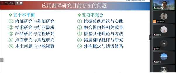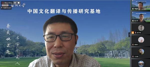 2022年6月27日14:30-16:00,上海大学外国语学院教授、博士生导师,上海大学应用翻译研究中心主任,《上海翻译》主编傅敬民教授通过腾讯会议平台,应邀为我院师生讲学。讲座由中国文化翻译与传播研究基地主任陈大亮教授主持,主题为“应用翻译研究:现状与趋势”。从新时代应用翻译研究新视野、应用翻译研究的现状、应用翻译研究的趋势全面解读了应用翻译研究在国内的发展现状和趋势。有来自学院50余名师生参与了此次在线讲座。