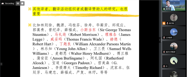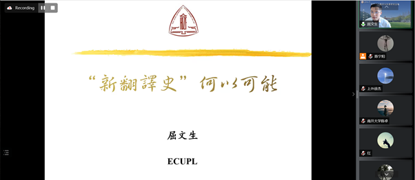 2022年7月8日9:30-12:00,华东政法大学外国语学院屈文生教授通过腾讯会议平台,应邀为我院师生讲学。讲座由中国文化翻译与传播研究基地主任陈大亮教授主持,主题为“新翻译史”何以可能?。西方中心主义给中国翻译史研究留下深刻方法论烙印。反思翻译界近年来存在的类似“冲击—回应”模式的研究范式,屈文生教授提出重写翻译史的“新翻译史”研究路径,并详细分析了该研究路径的理论基础和实践方法。共有学院及其他高校近200名师生参与了近两个半小时的在线讲座。